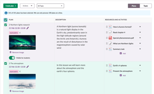 Op de pagina met één plan kunnen docenten nu kiezen om een bron te verplaatsen naar een ander plan binnen hetzelfde onderwerp. Bij het openen van het venster kunnen ze alle plannen binnen dit onderwerp zien, maar als er veel plannen zijn, kunnen ze ervoor kiezen om te filteren op huidige en komende plannen, plannen uit het verleden of plannen zonder datum.